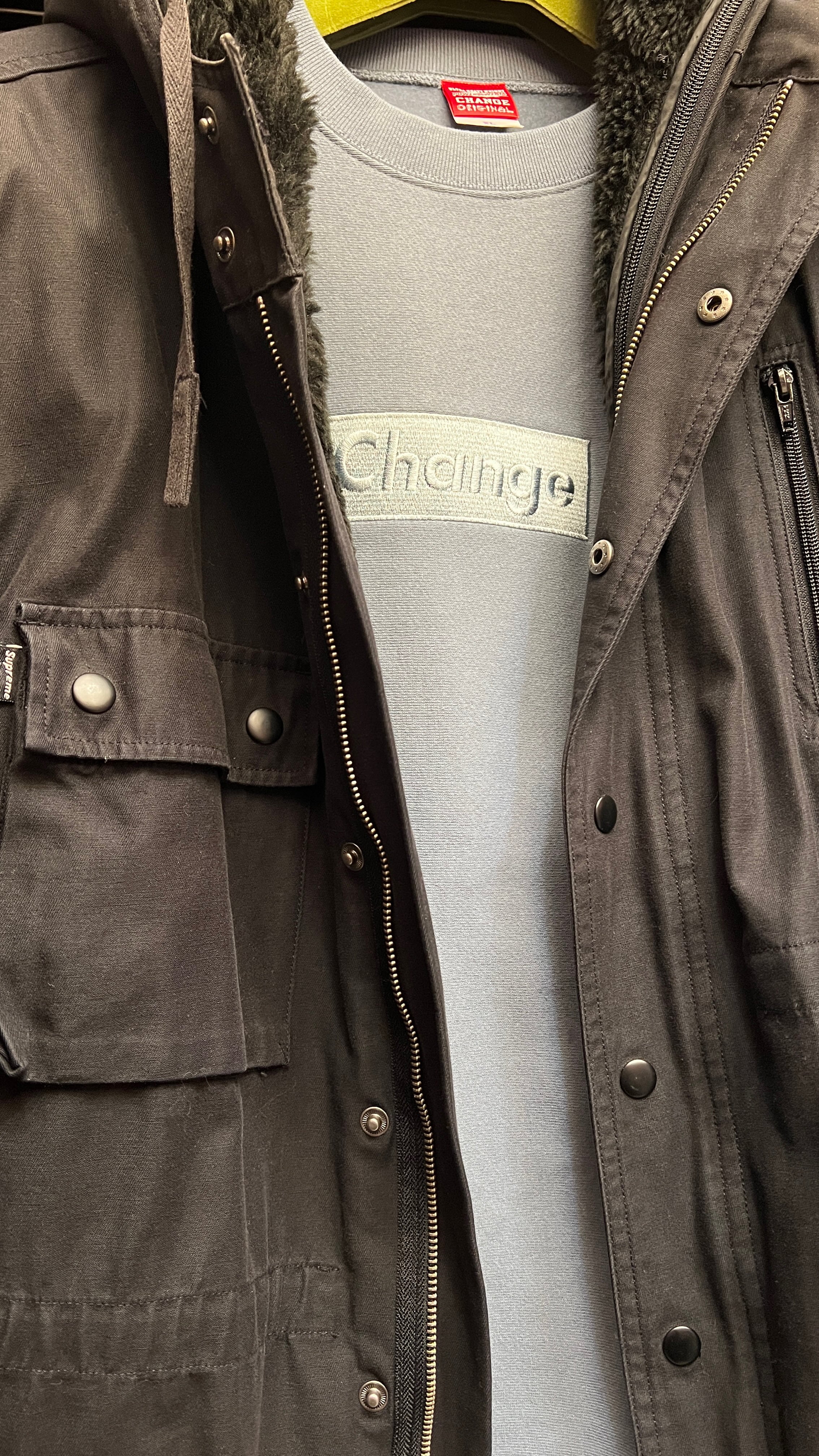 ボックスロゴ着たいけど派手すぎるよなと思うときもありますよね。そんな時にプリントや無地では無く何かあればなと思った事はありませんか?はい、それが今回CHANGEで製作したTONAL BOX LOGOです。無地のようでよく見るとしっかりしたボックスロゴが胸元に鎮座しております。角度によりボックスやブランド名が色んな表情をするので楽しいです。目立たないけど所有満足度や着用満足度は高いという点や嫌味にならない感じもポイントかなと思ってます。“さりげなさ”ですねw前回も話しましたがCHANGEでは総刺繍が当然のようになってますがコスト面や制作面から本当に小ロットの我々からすると奇跡のような感じで作ってますのでその辺りの希少性も感じて着て下さいね♪