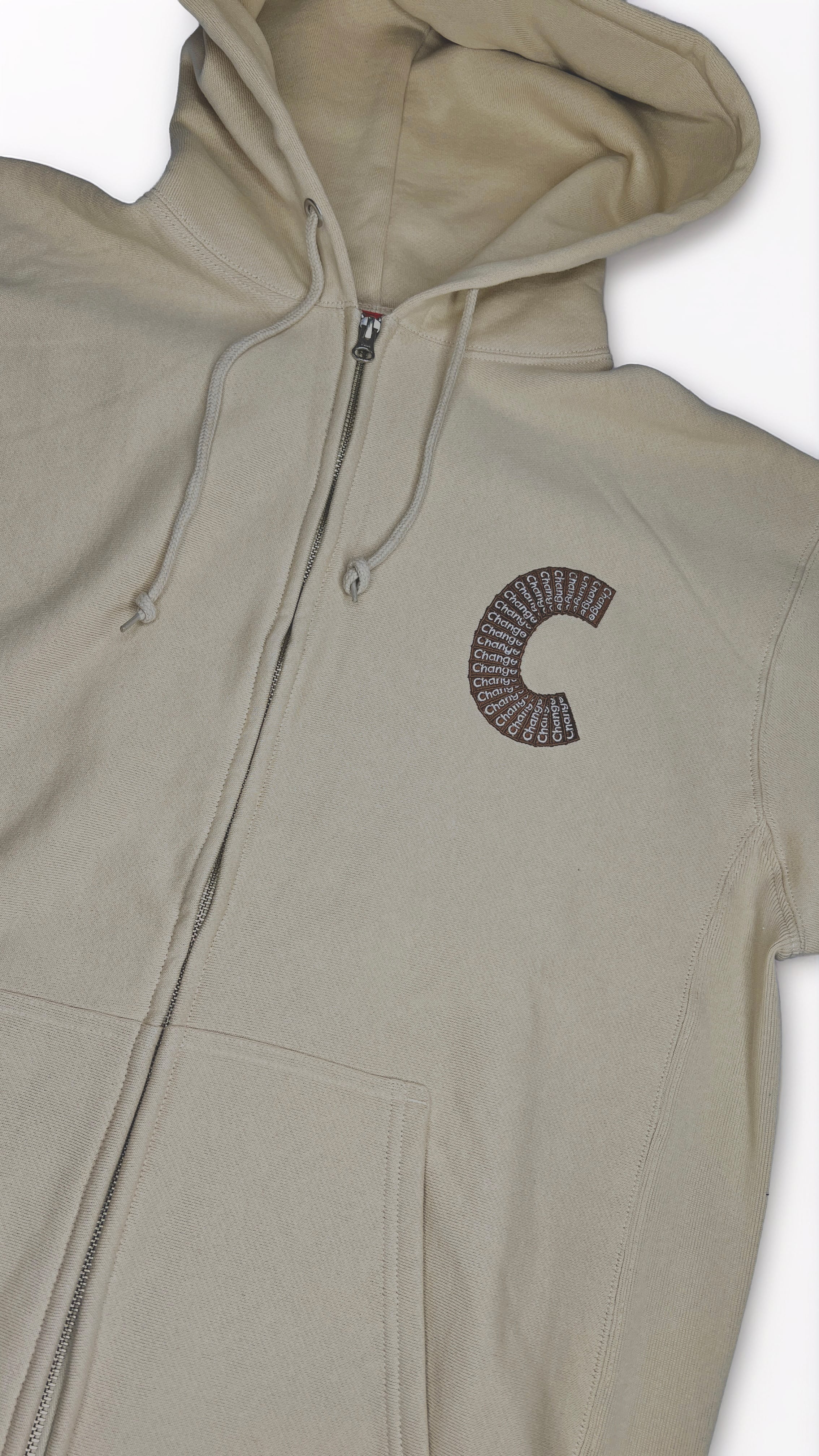 C Logo Zip Up Hooded Sweatshirt(Sand)